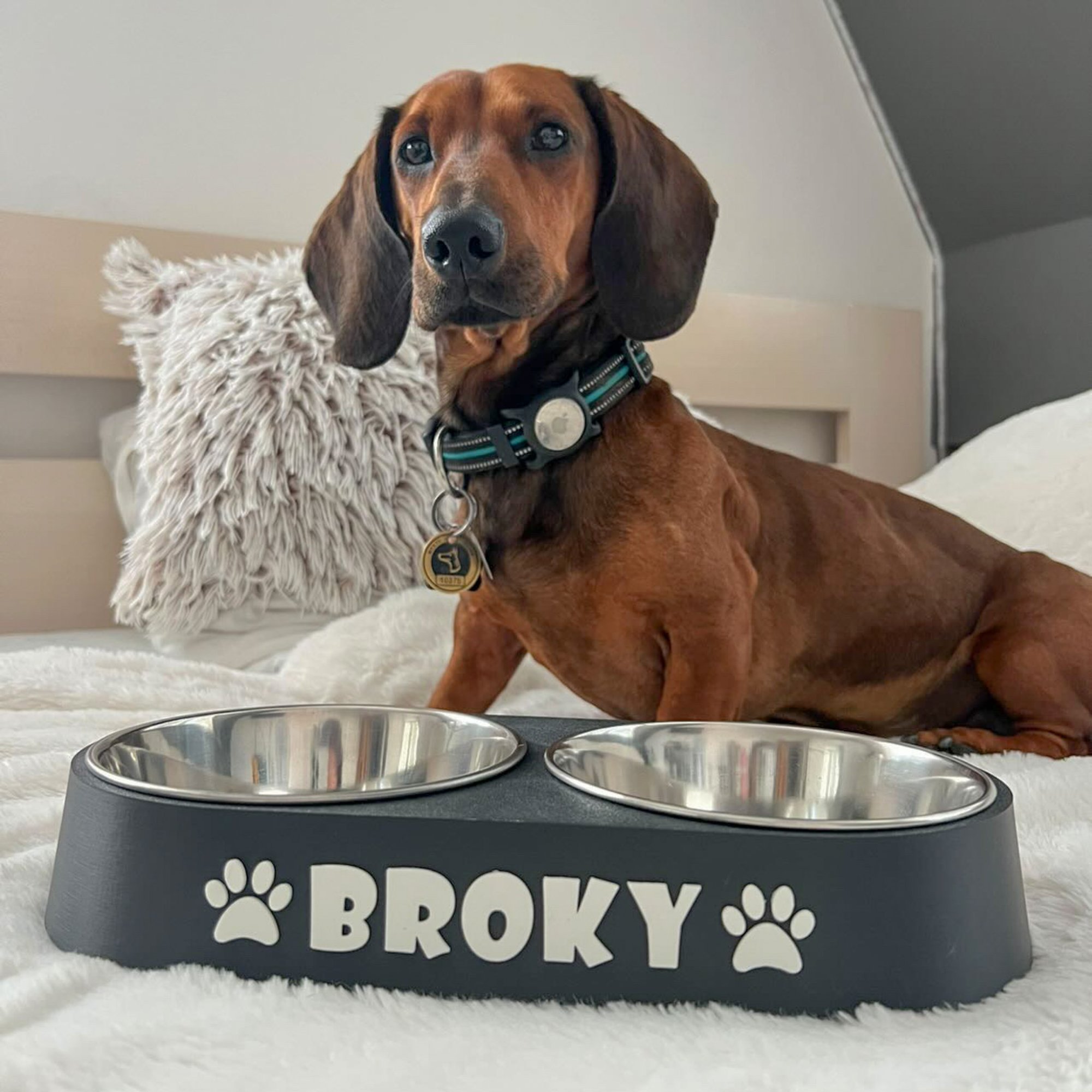 Dvojmiska je ideálna, ak chceš mať jedlo aj vodu spolu na jednom mieste. Vyzerá upratane, šetrí miesto a zjednodušuje denný režim. Zároveň môžeš zladiť veľkosť oboch nádob podľa potrieb psa.