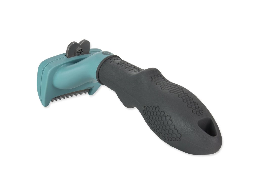 Vyčesávacia hrana z nerezovej ocele preniká hlboko do srsti zvieraťa, kde šetrne a ľahko odstraňuje uvoľnené chlpy z podsady bez toho, aby poranila kožu alebo poškodila srsť. Ochranný kryt po koži hladko kĺže a bráni tomu, aby sa okraje vyčesávacej hrany zabodávali do kože.