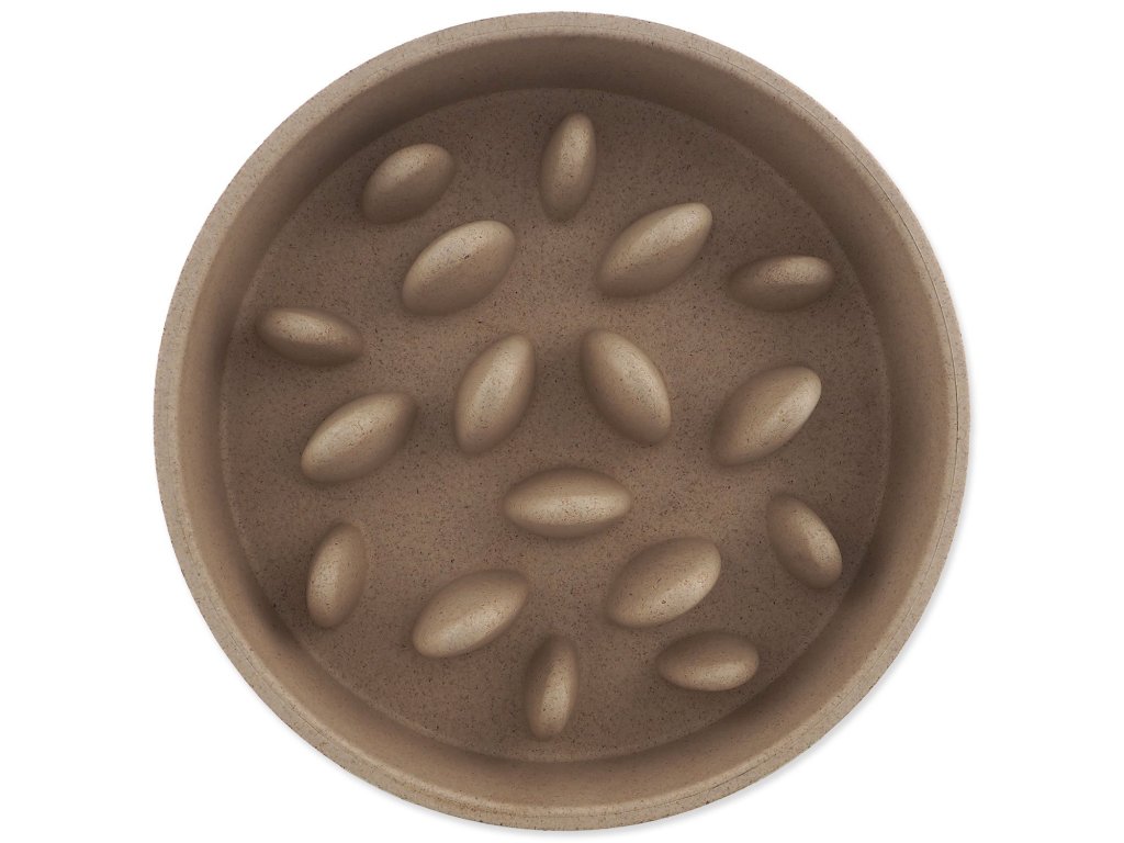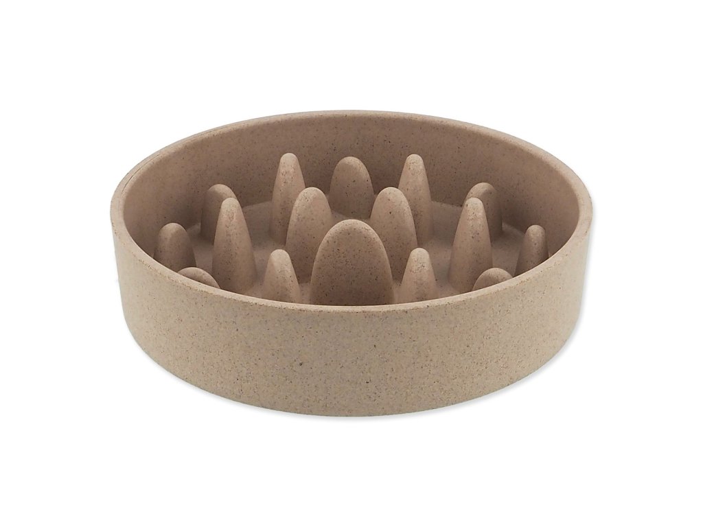 Štýlová miska v béžovom prevedení, ktorá vďaka špeciálnemu tvaru spomaľuje príjem krmiva a podporuje zdravé trávenie psa. Zabraňuje hltaniu, predchádza tráviacim ťažkostiam a robí z kŕmenia pokojnejší a zdravší rituál. Vyrobená z odolného ekologického materiálu, ktorý je pevný a ľahko sa čistí.
