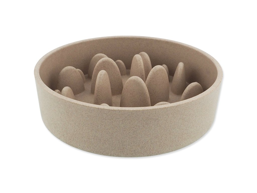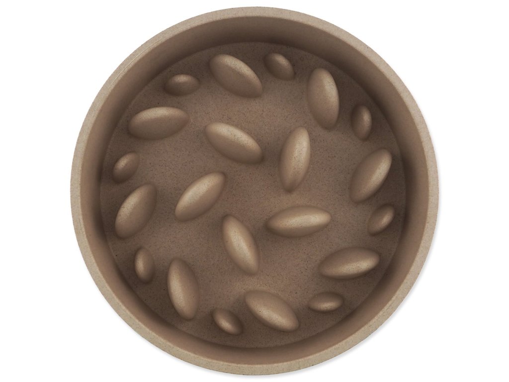 Štýlová miska v béžovom prevedení, ktorá vďaka špeciálnemu tvaru spomaľuje príjem krmiva a podporuje zdravé trávenie psa. Zabraňuje hltaniu, predchádza tráviacim ťažkostiam a robí z kŕmenia pokojnejší a zdravší rituál. Vyrobená z odolného ekologického materiálu, ktorý je pevný a ľahko sa čistí.