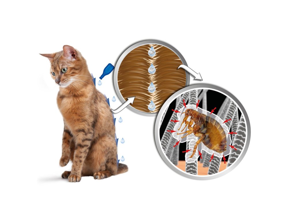 Návod na použitie: Obsah jednej pipety naneste priamo na kožu mačky pozdĺž chrbtice od krku po chvost. Aplikujte každé štyri týždne alebo po kúpeli.