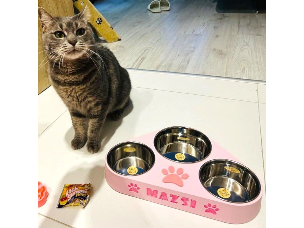 Praktická a štýlová trojmiska s menom pre psov, mačky aj iných menších miláčikov. Trojmiska Klasik veľkosti S+S+S je vhodná na každodenné používanie a vďaka personalizácii vytvorí pekné a originálne miesto na kŕmenie. Vyberať môžete z viacerých farieb misiek, z klasického alebo farebného písma a doplniť ju aj o znak vedľa mena.